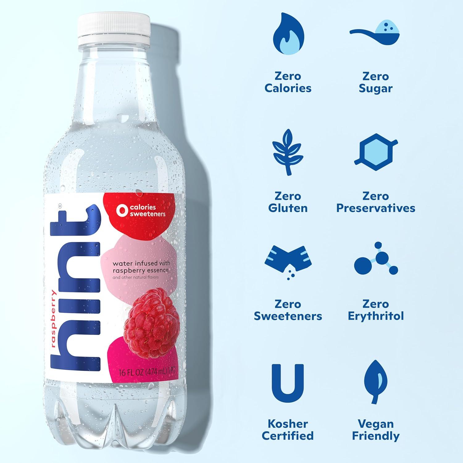 Hint Fruit-Infused Bottled Water, Best Sellers Variety Pack - Sugar Free Flavored Water with Zero Calories, Natural Fruit Essences, and No Artificial Sweeteners - 16 Fl Oz (Pack of 24)(Raspberry)