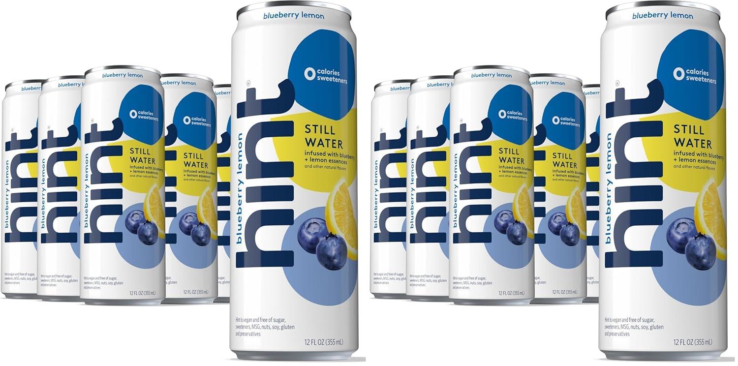 Hint Fruit-Infused Canned Water, Blackberry - Purified Flavored Water with Zero Calories, Natural Flavors, and Sugar Free - 12 Fl Oz Cans (Pack of 24)(Blueberry Lemon)