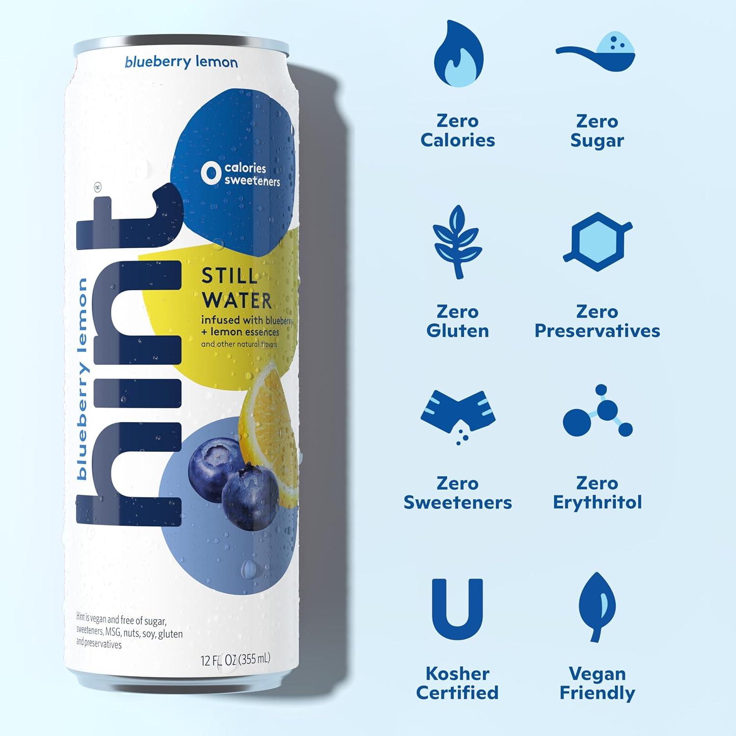 Hint Fruit-Infused Canned Water, Blackberry – Purified Flavored Water with Zero Calories, Natural Flavors, and Sugar Free – 12 Fl Oz Cans (Pack of 24)(Blueberry Lemon)